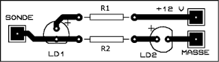 Pour tester des points particuliers dans un circuit électrique d'une voiture, un petit montage simple avec deux diodes LED suffira ; la détection de défaut est simplifiée en visualisant l'état d'allumage des voyants.